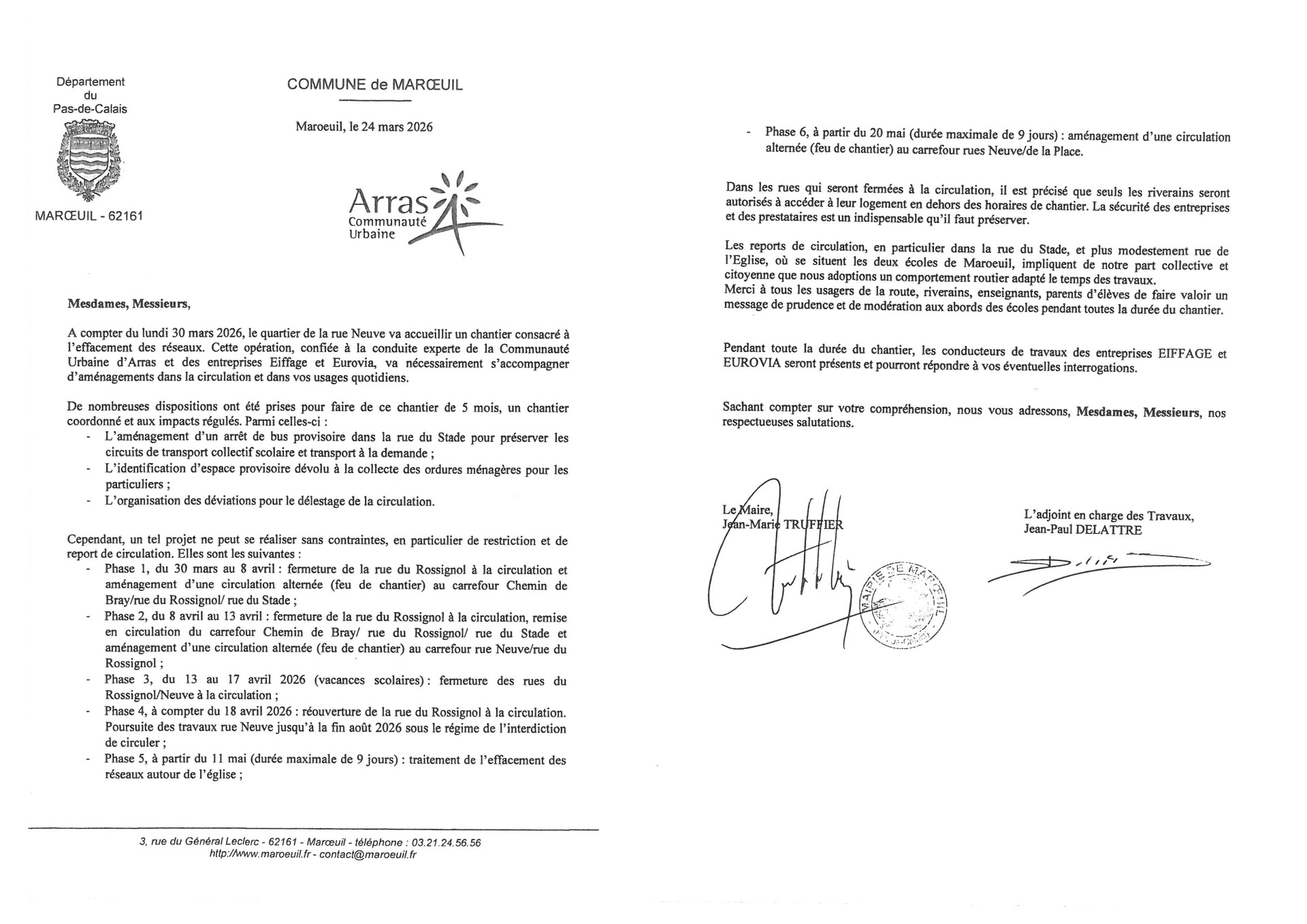 📅 Vous trouverez ci-dessous le courrier explicatif et le détail des différentes phases du chantier